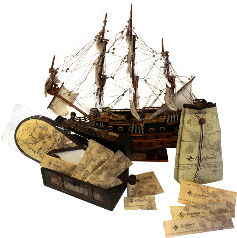 The Explorer line is easily recognisable thanks to the image of an ancient map featured on each item capturing, in words, various marvels of the world (the Pyramids, Grand Canyon, etc.).