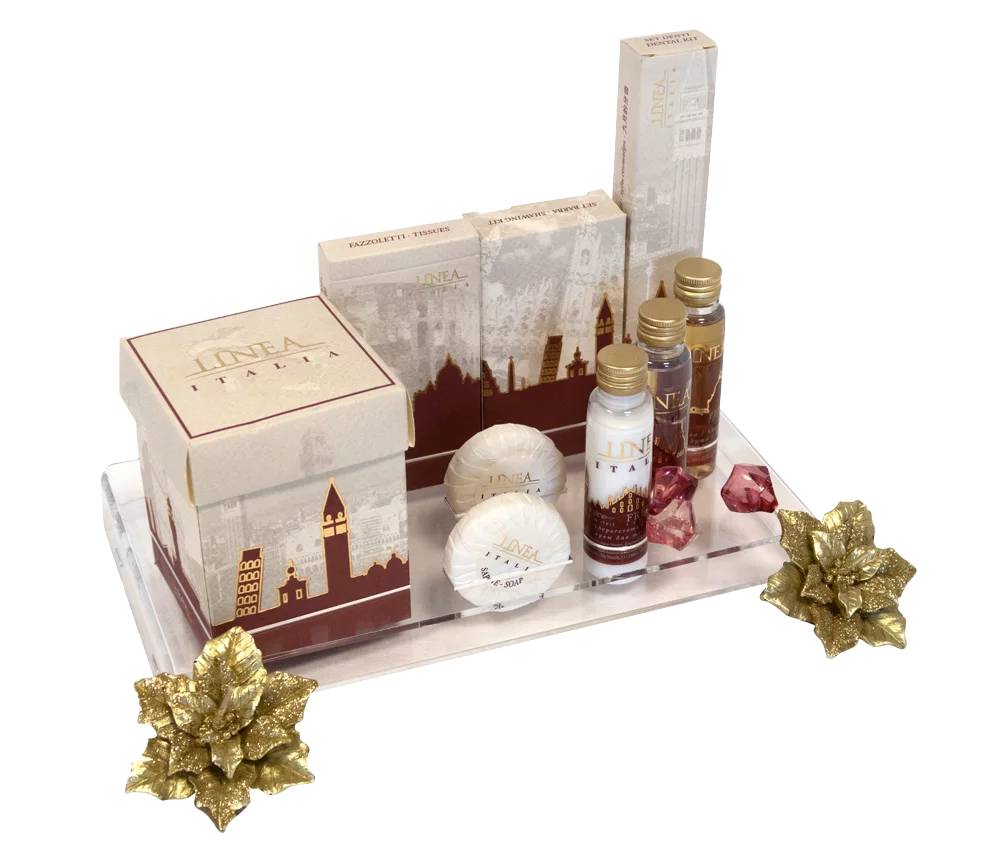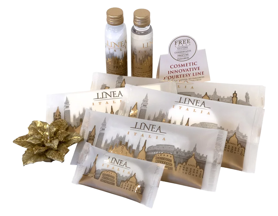 A stay must take into consideration the sensitivity of the skin of its next guest and if it wants to seal the bathroom with a welcome cosmetic gift that enhances both its location and the attention to the uniqueness of those who live it, the choice can only fall on a cosmetic that enhances the inspiration.