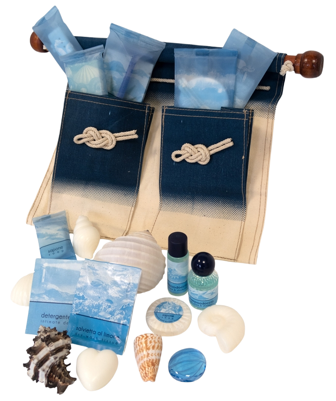 The Sea Line is packaged in translucent flow packs of 90 micron and is distinguished by the playful interaction of all the items. Each item depicts a different and typical marine detail in symbiosis with the product inside. When these products are placed inside a special complimentary holder and put together, the result is emotionally and visually captivating.