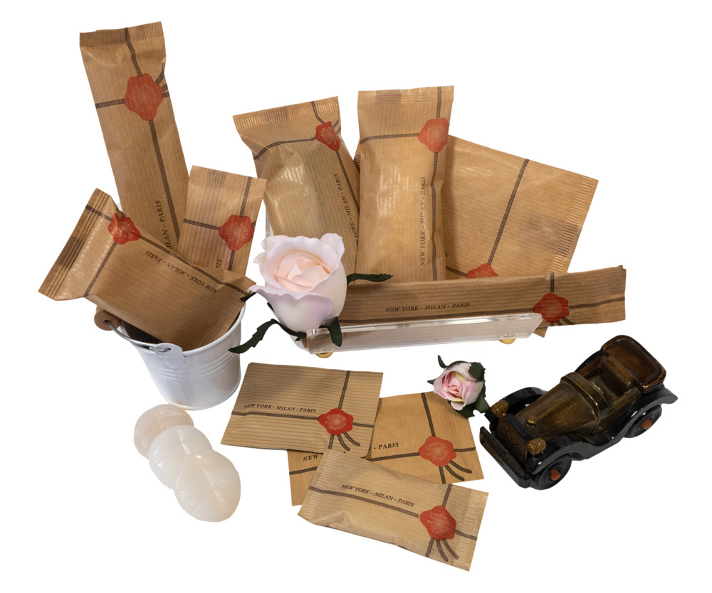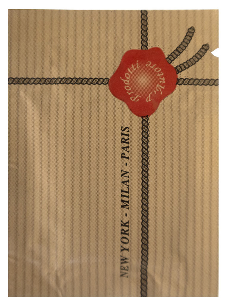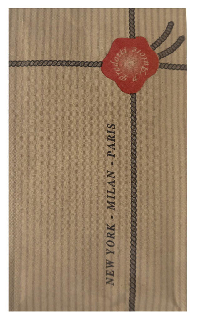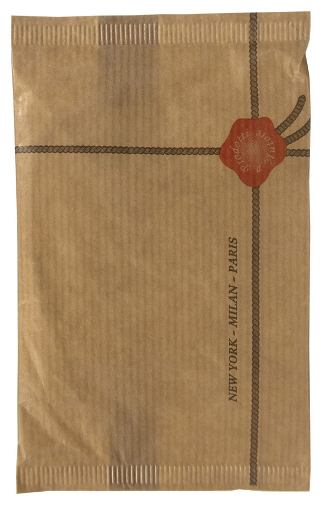 Tradition and modernity meet. The ribbed material, a classy reinterpretation of wrapping paper, creates a thread of temporal continuity with the modern printing of the string and the lacquer wax seal of the past. Yesterday as today the journey is enhanced in the accessories that accompany it.